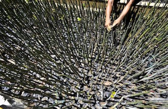 Tri Neno Nugroho, 28, dan calon Riska Widyastuti, 25, tersenyum lebar saat keduanya menyerahkan empat bibit pohon kepada Pemerintah Kota Balikpapan. Efektif mulai Januari 2014, semua calon pengantin wajib menanam pohon sebagai syarat administrasi pernikahan.