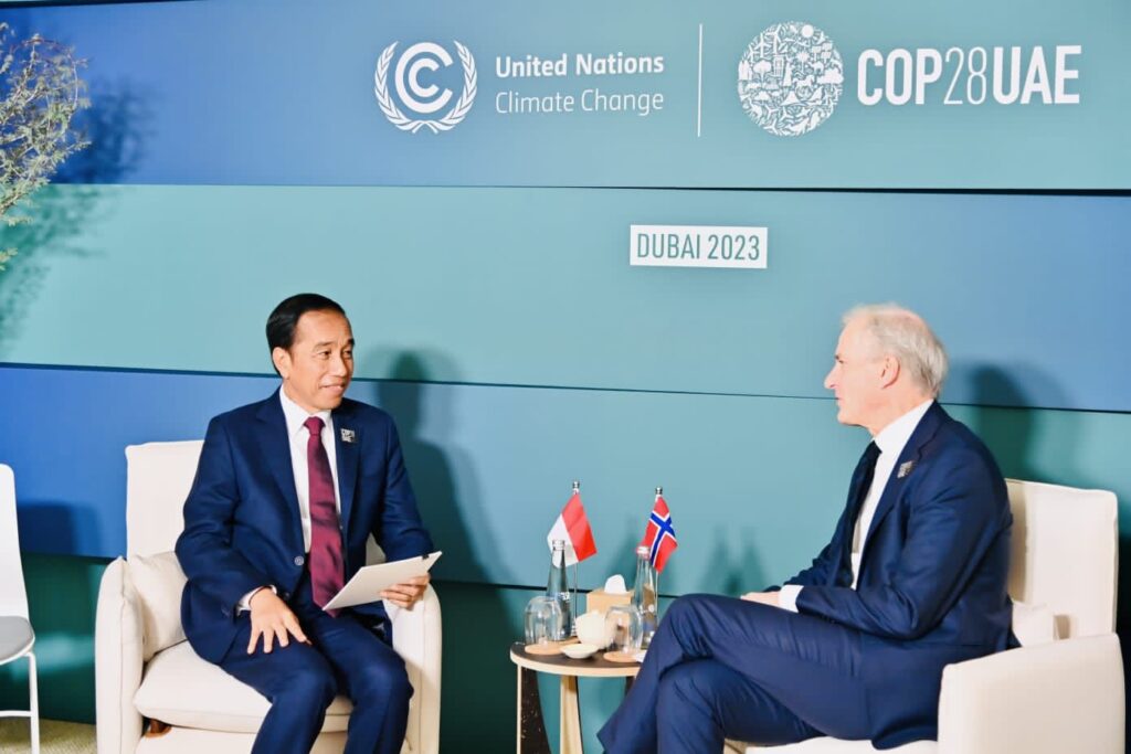 Presiden RI Joko Widodo (Jokowi) melakukan pertemuan bilateral dengan Perdana Menteri Norwegia Jonas Gahr Støre. Pertemuan di sela-sela World Climate Action Summit (WCAS) COP28 Dubai pada Jumat (1/12/2023) itu membahas deforestasi dan Keadilan Informasi.