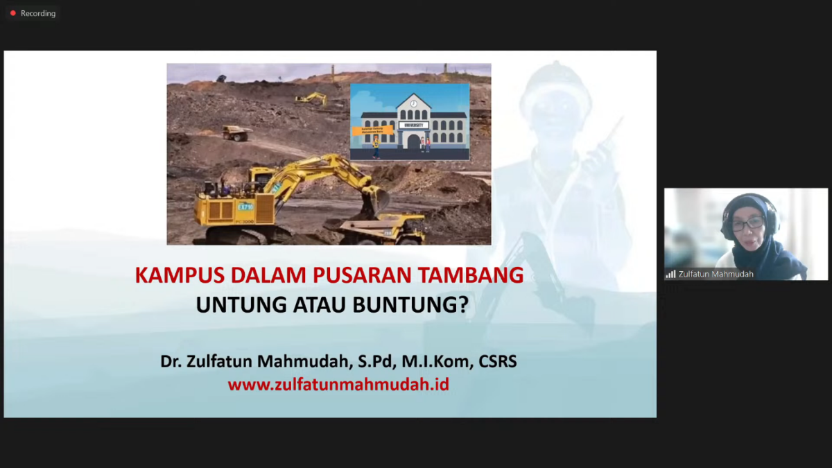 Akademisi dan pakar pertambangan Zulfatun Mahmudah dalam presentasinya menegaskan, dipastikan kampus akan buntung bila nekad mengelola tambang. Dia mengungkapkan tiga alasan antara lain menyangkut kemampuan finansial, kapasitas operasional penambangan termasuk tantangan sosial dan lingkungan, hingga kehancuran reputasi kampus itu sendiri.