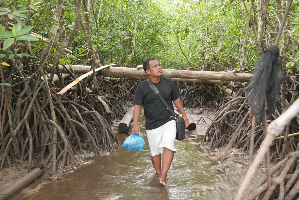 “Hutan mangrove semakin menipis, kepiting bangkang yang dulu bersarang di akar-akar bakau, sekarang lari ke laut karang. Perubahan ini menyulitkan kami,” ungkap Jembol.